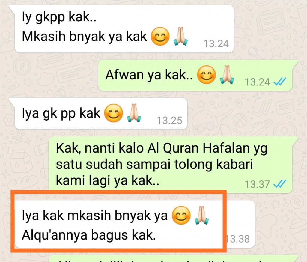 Sambil membayangkan manfaat dan BONUS yang Anda dapatkan setelah Order Al Quran ini, Whatsapp Sekarang untuk pesan melalui CS kami.