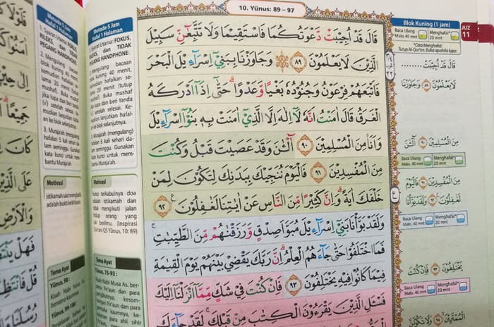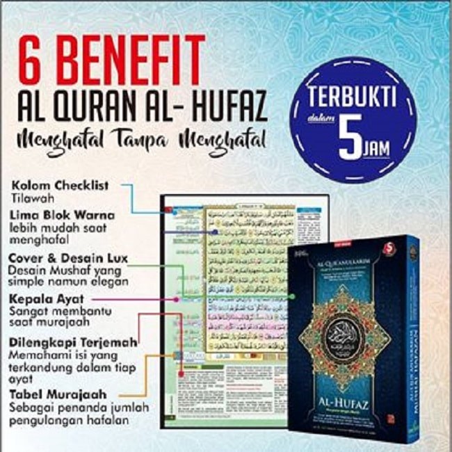 1. Setiap halaman dibagi mejadi 5 blok warna, karenanya Anda akan semakin mudah ingat ayat yang dihafal serta posisinya pada halaman tersebut.